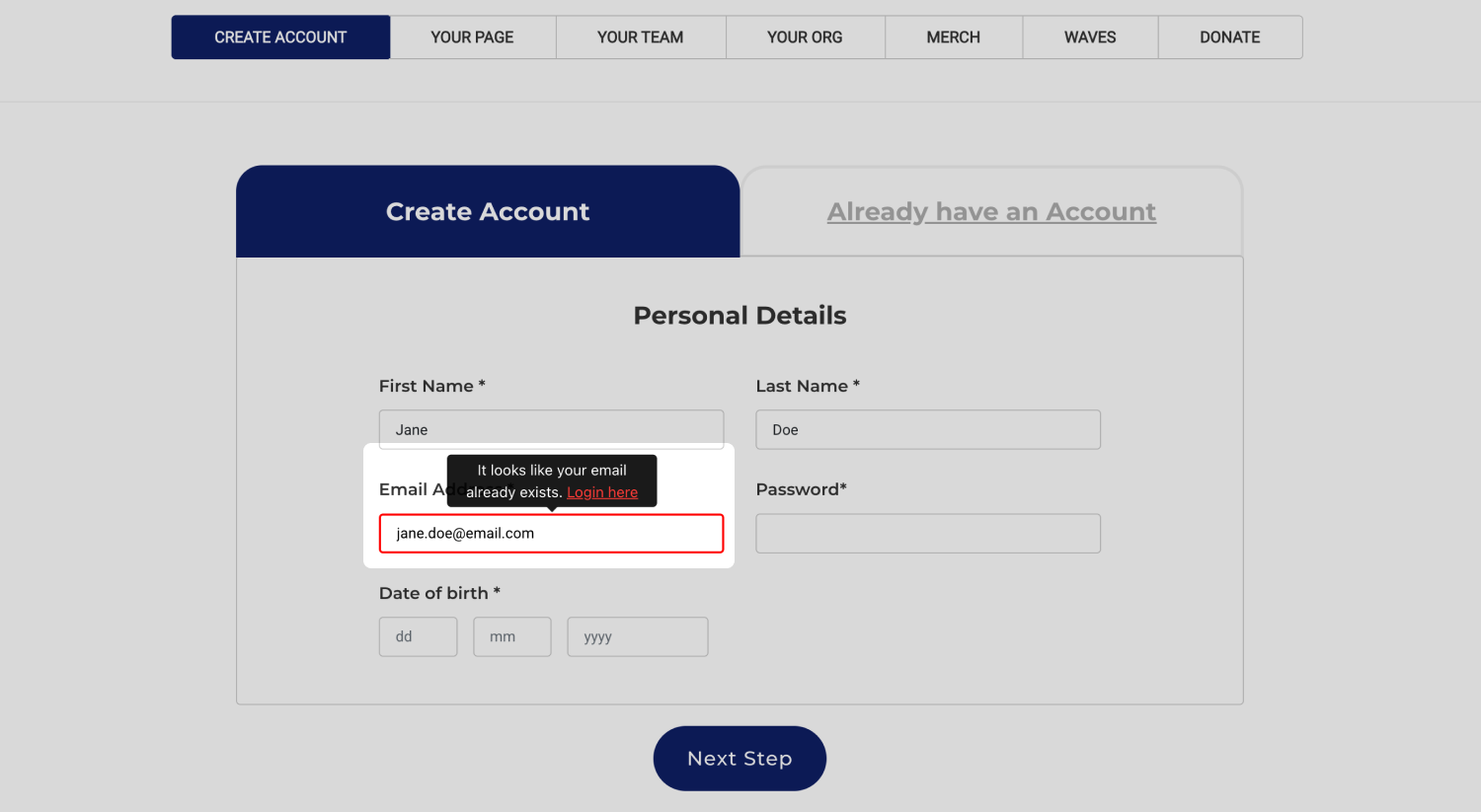 Passwords are a key part of how fundraisers access their accounts and keep their information secure. Every registration requires a password—new participants create one during their first signup, while returning supporters use the same login details to access their dashboard and keep all their history linked to a single record.