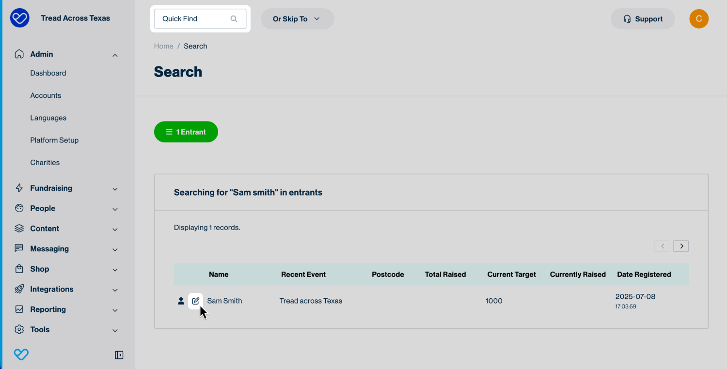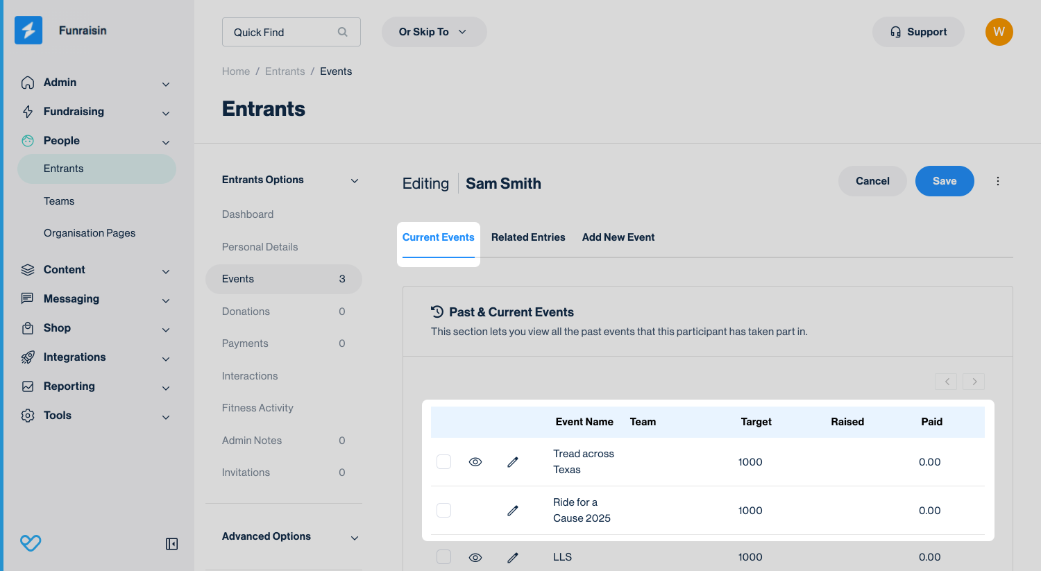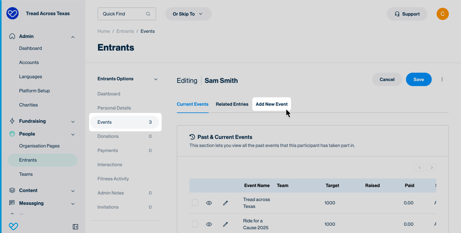 Every entrant record stays connected to a supporter’s activity across your platform, including the events they take part in. While most supporters register themselves through your event entry forms, there are times when admins need to step in.