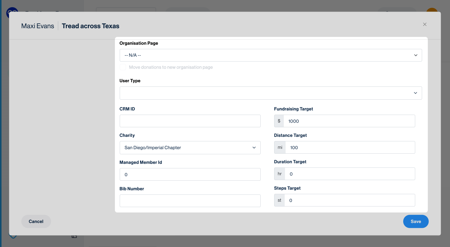 Tip! If your event has minimum targets, admins can override them here when adjusting a fundraiser’s goal.