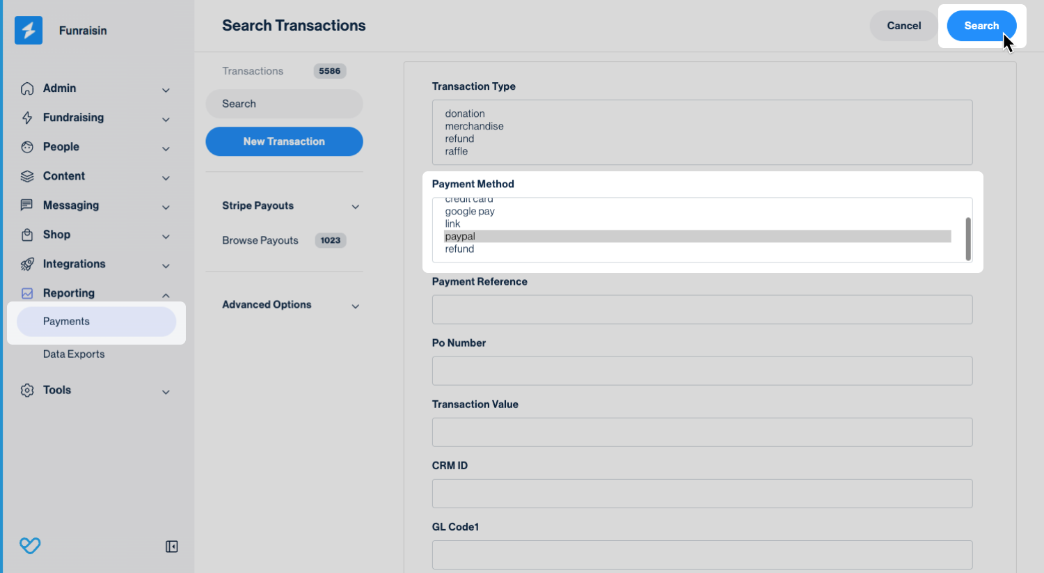You can easily identify PayPal payments across your platform using either Donation or Transaction reports.